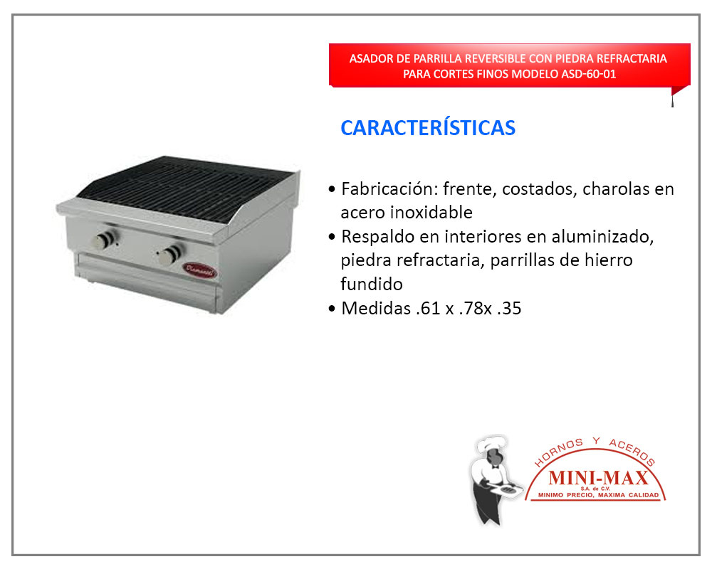 Asador De Parrilla Reversible Con Piedra Refractaria Cortes Finos Mod Asd-60-01